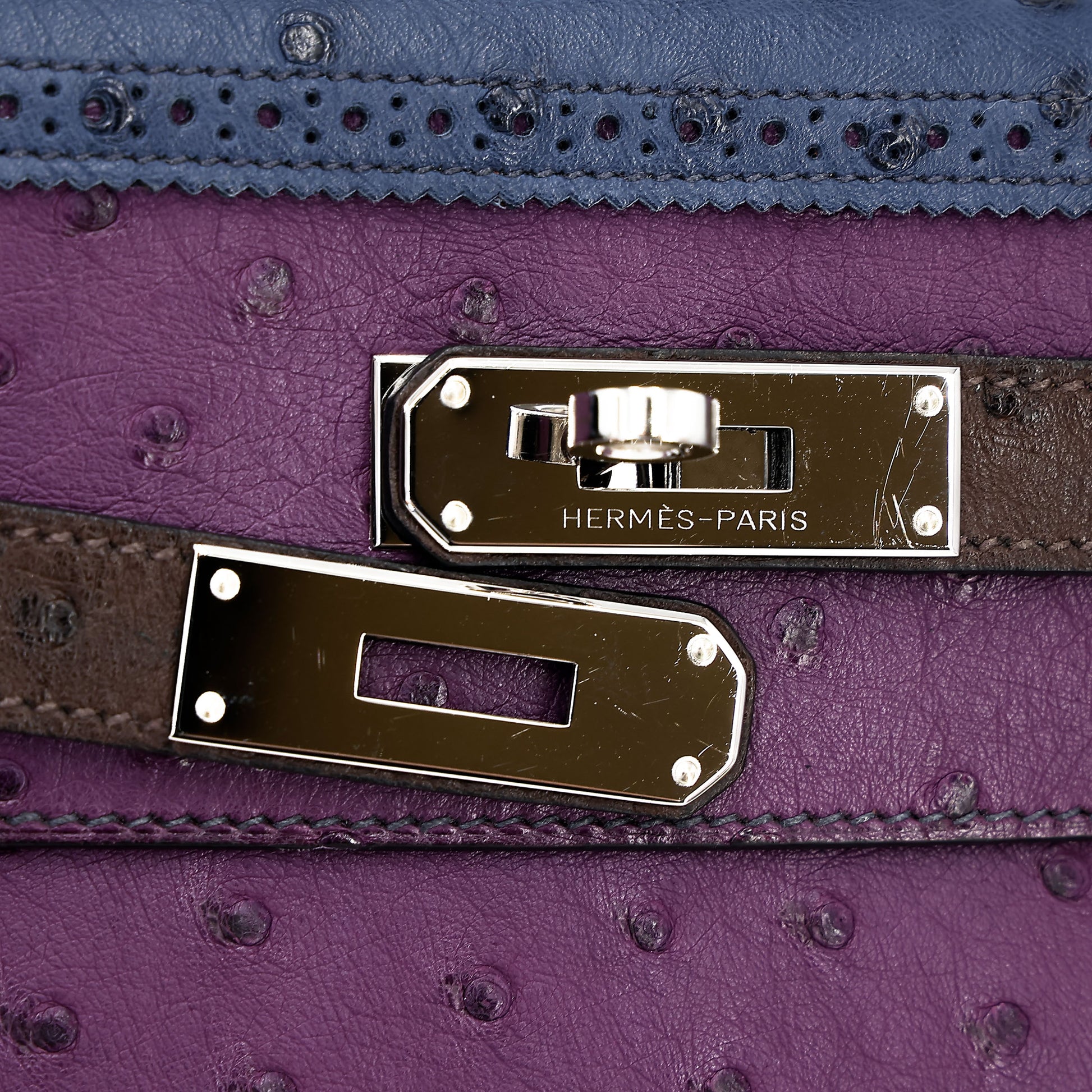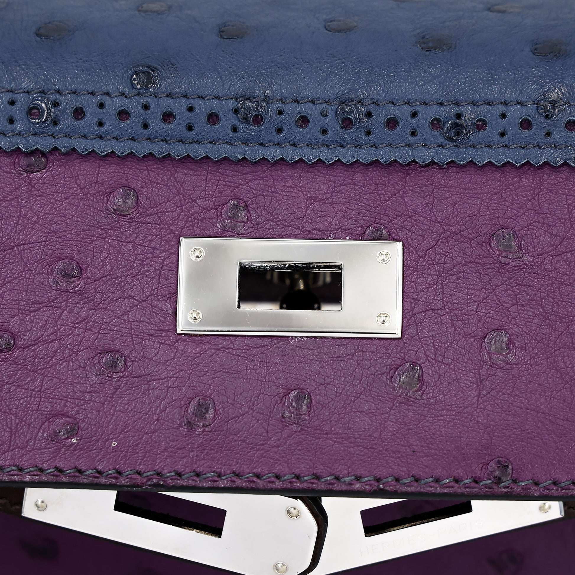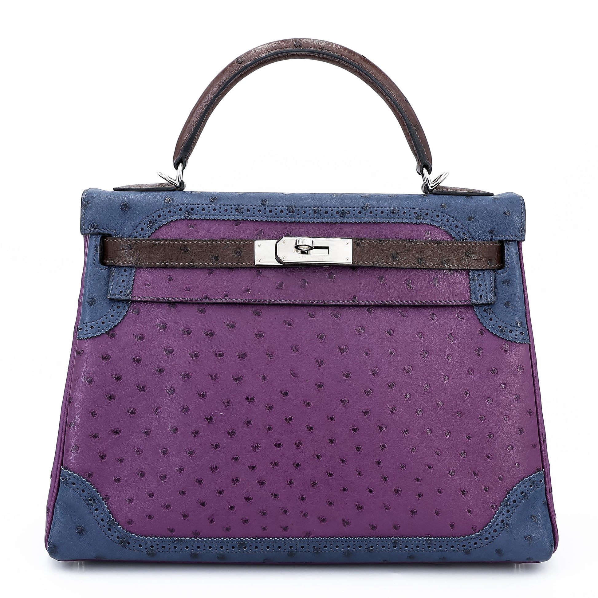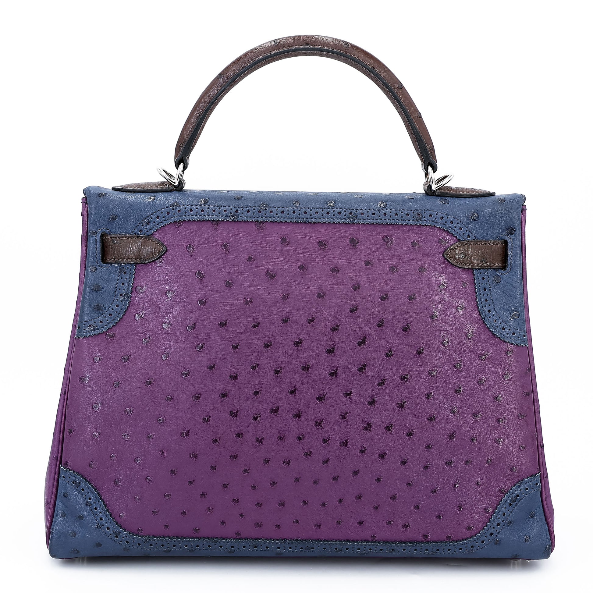 愛馬仕 Kelly Ghillies 32 Marron Fonce Bleu de Malte 紫羅蘭色鴕鳥皮