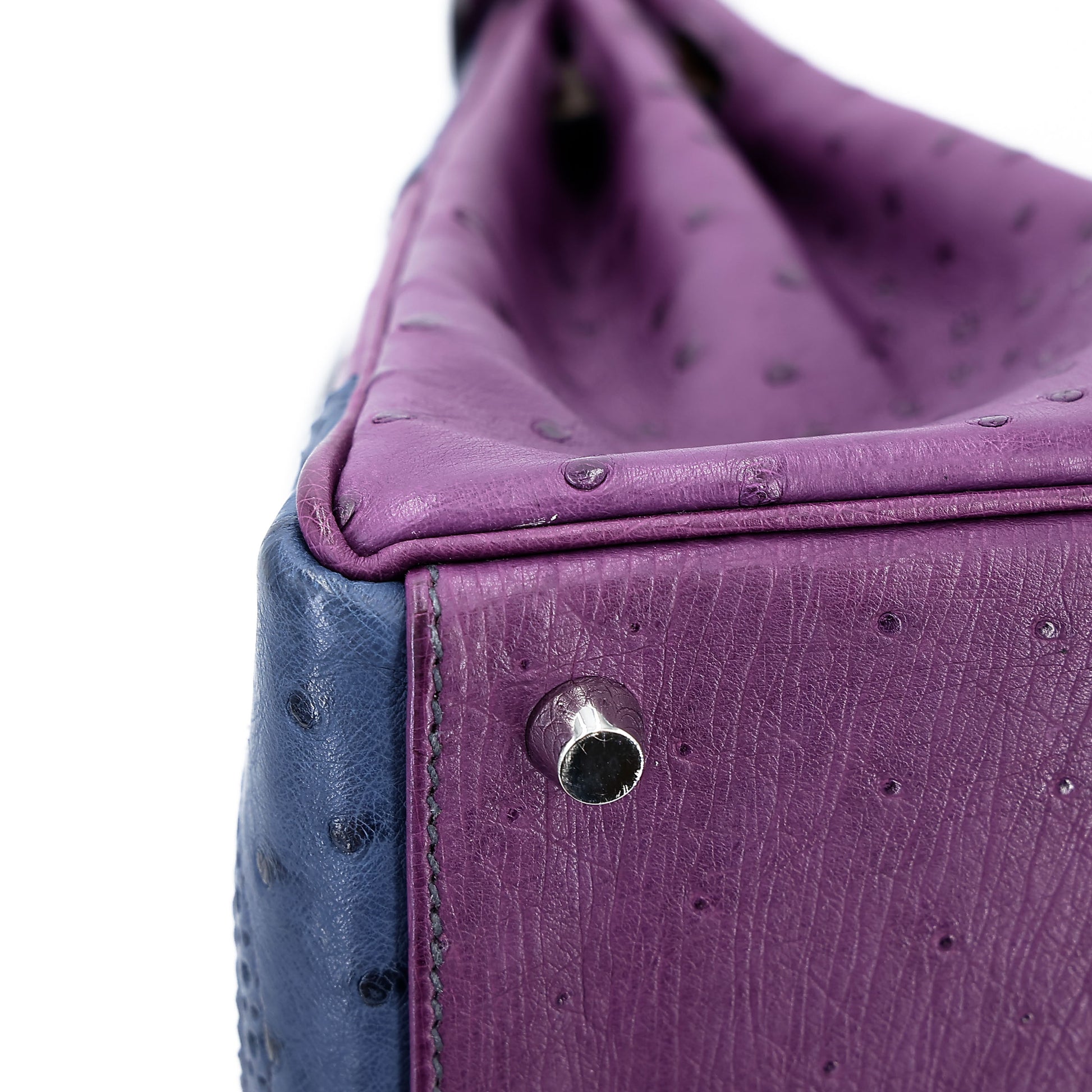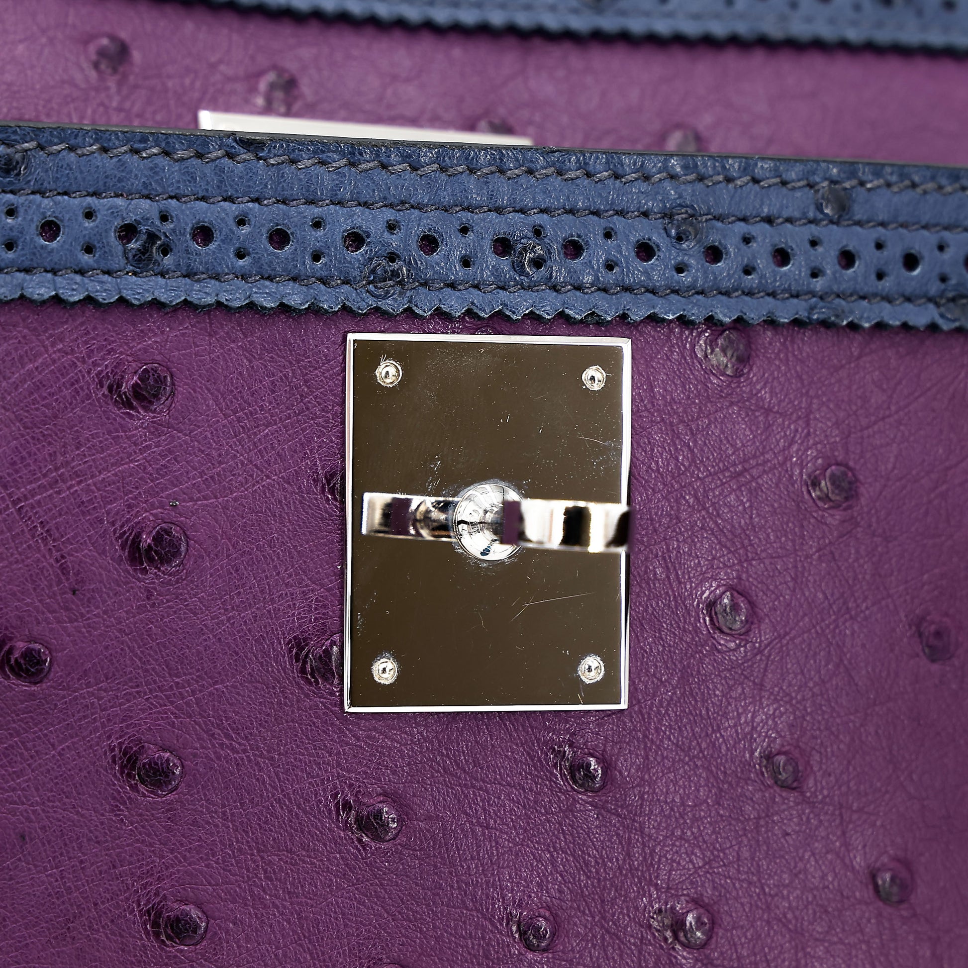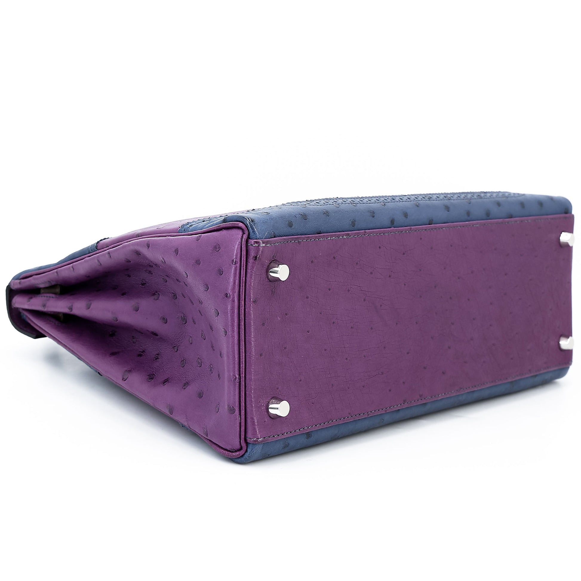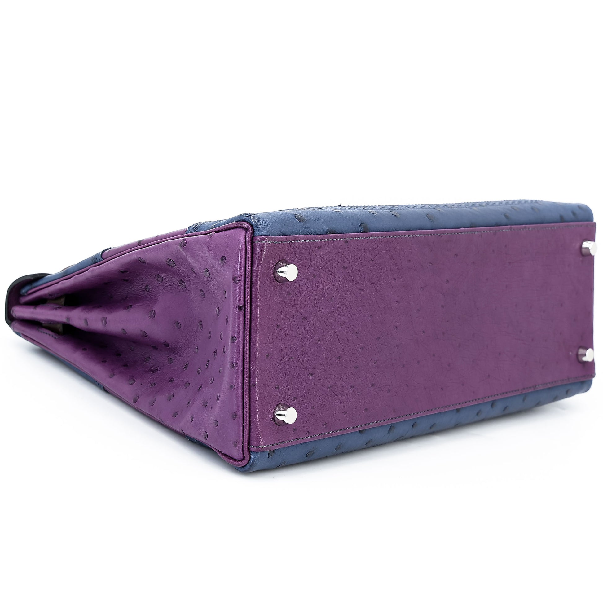 愛馬仕 Kelly Ghillies 32 Marron Fonce Bleu de Malte 紫羅蘭色鴕鳥皮