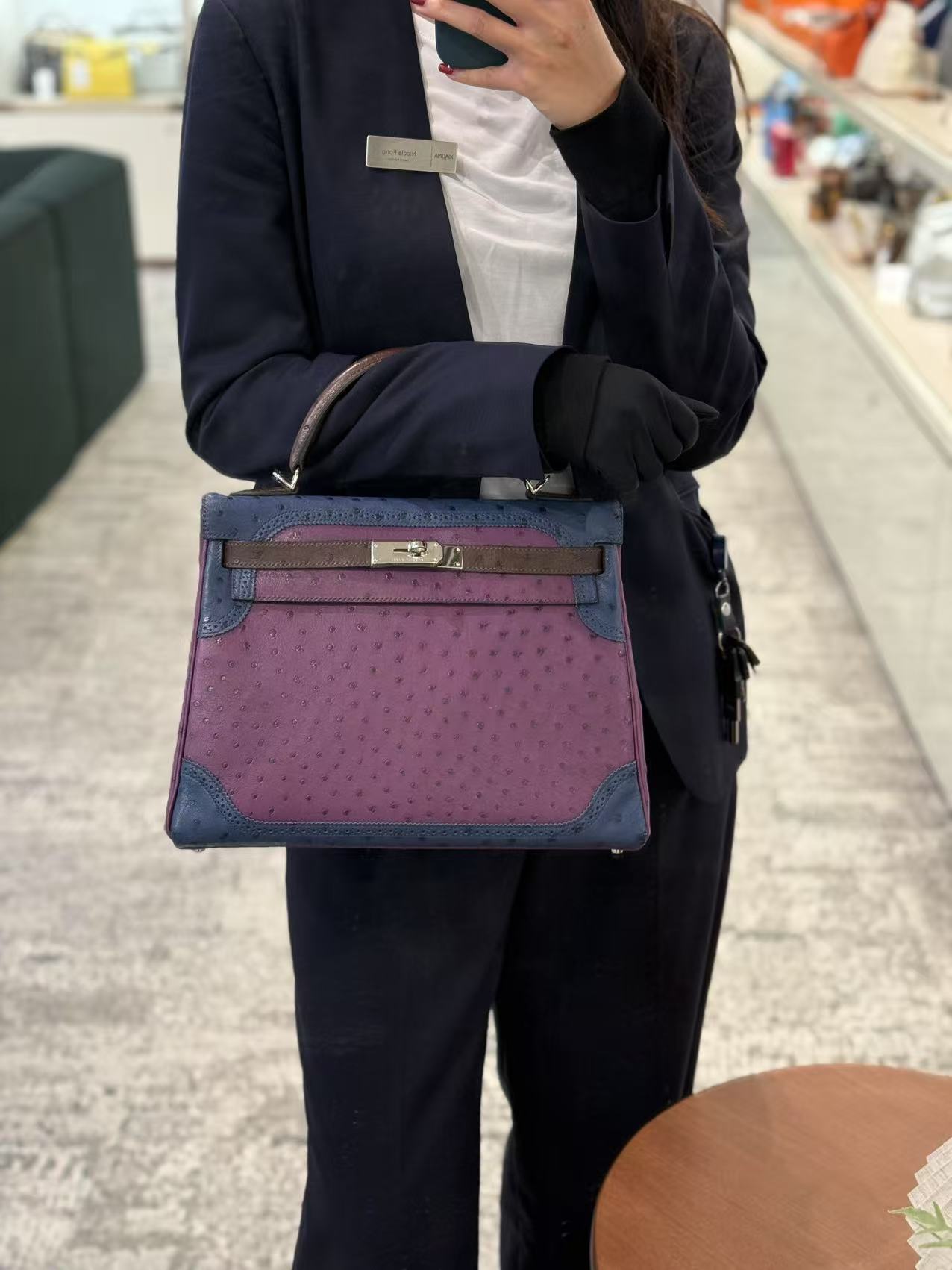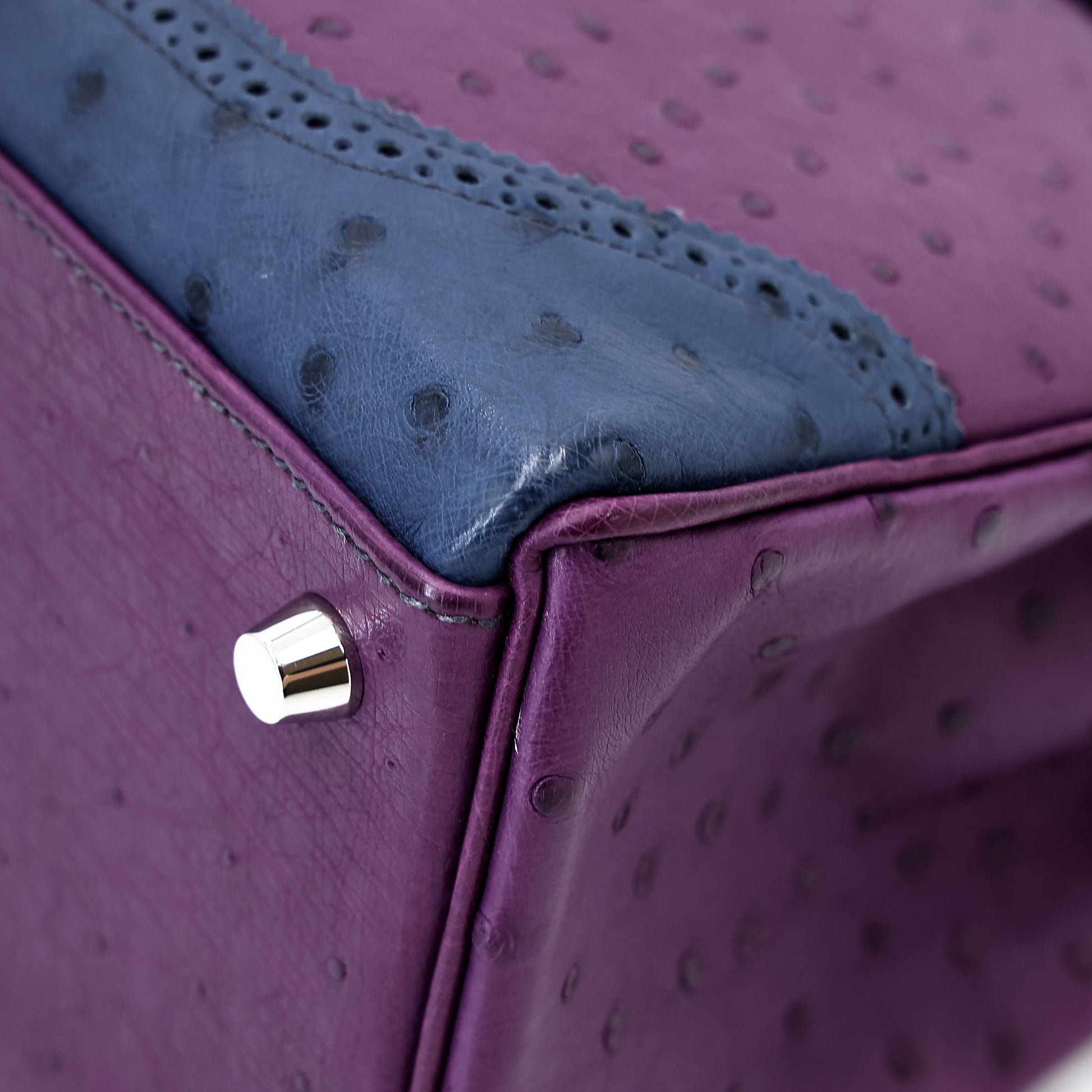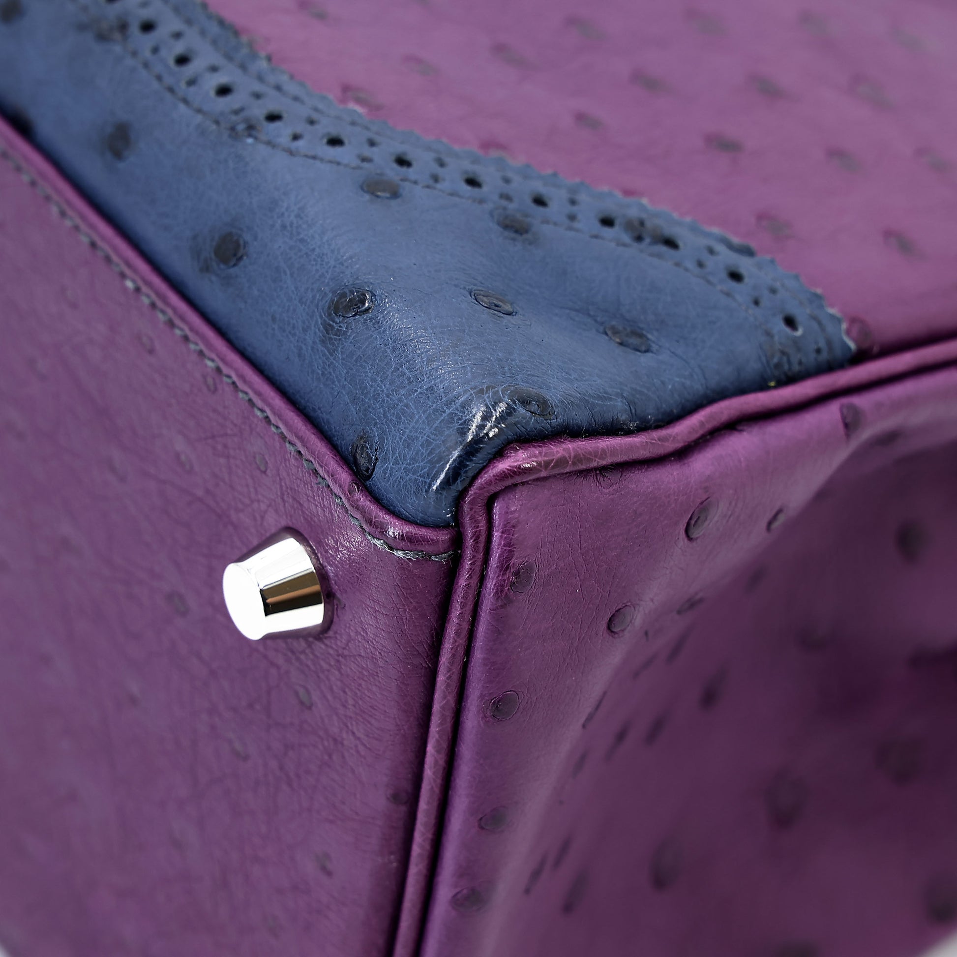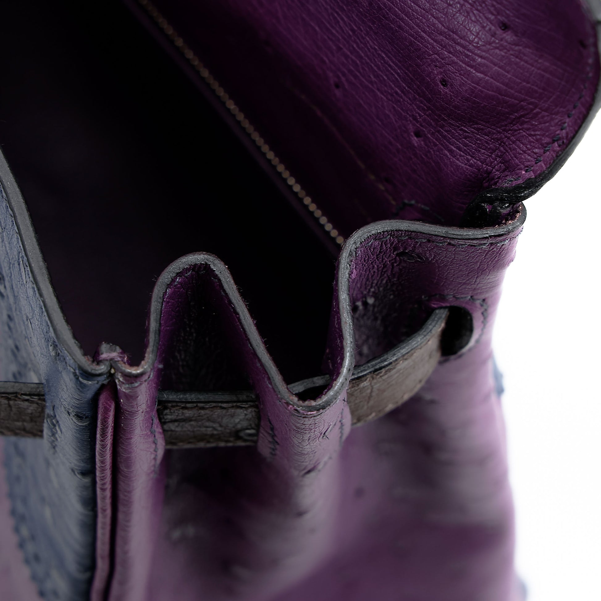 愛馬仕 Kelly Ghillies 32 Marron Fonce Bleu de Malte 紫羅蘭色鴕鳥皮
